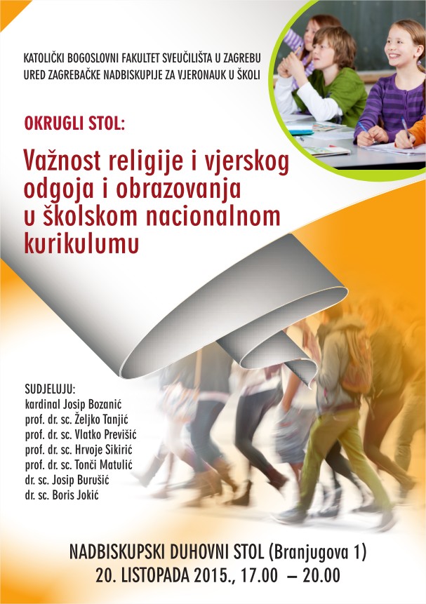 Okrugli stol održat će se 20. listopada 2015. godine u plavoj dvorani Nadbiskupskog duhovnog stola, Zagreb, Branjugova 1, s početkom u 17 sati.