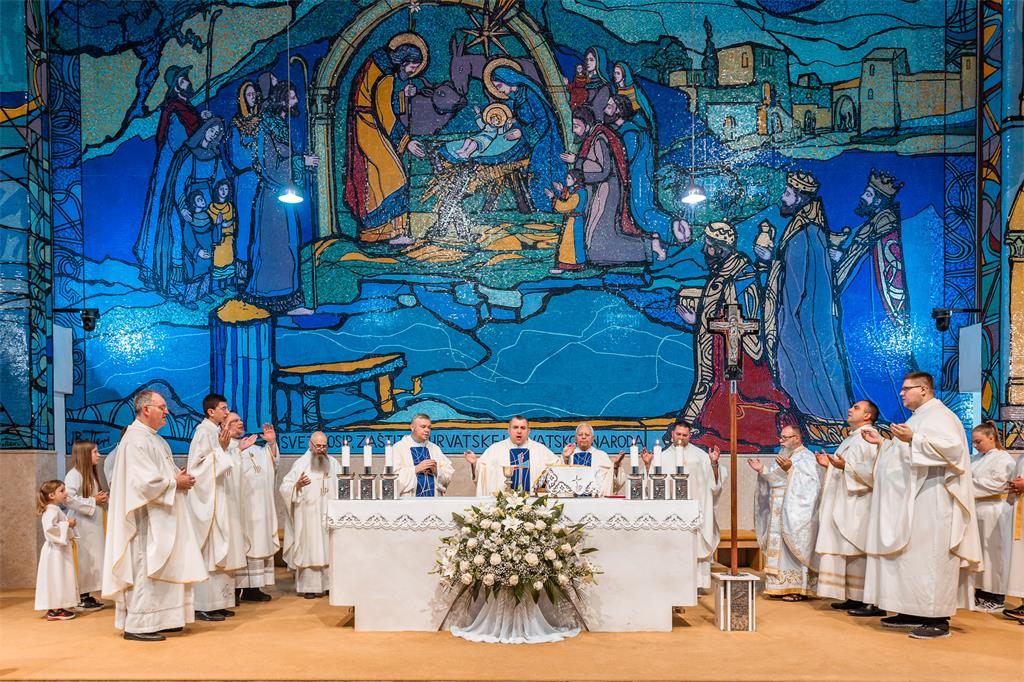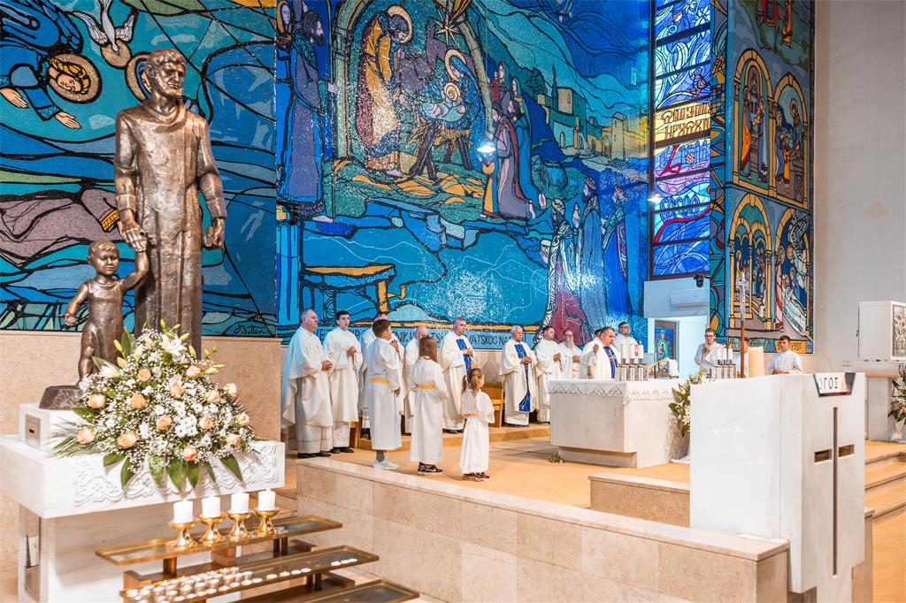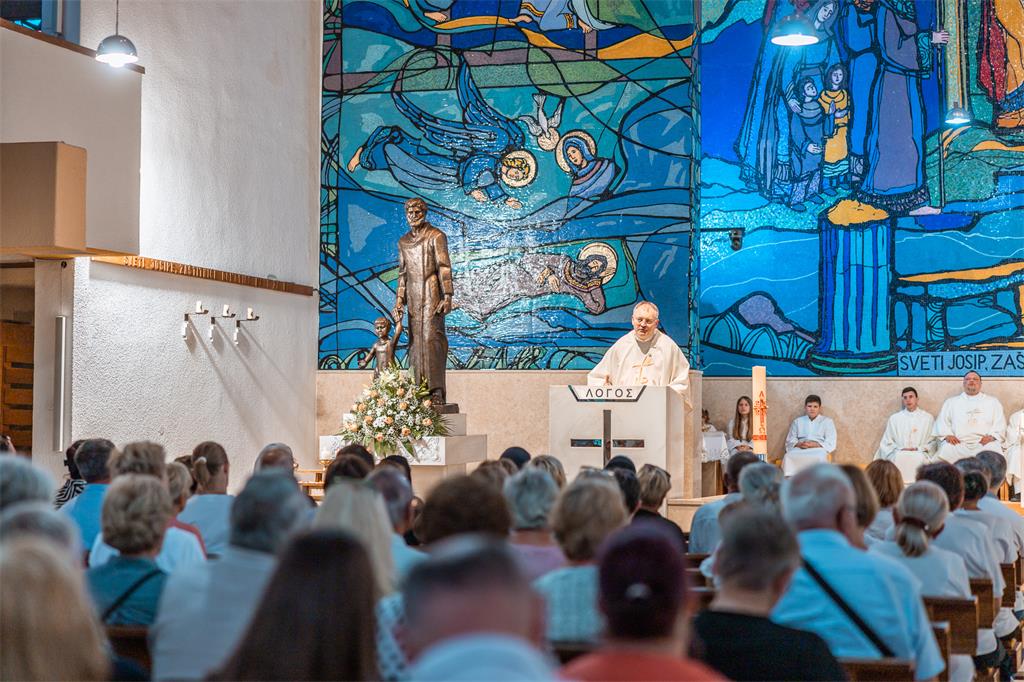 U homiliji je mons. Sente rekao da osluškujući naviještenu Božju riječ u kojoj apostol Pavao Solunjanima govori kako je naporno radio danju i noću želeći im navijestiti Evanđelje isto tako "možemo prepoznati da su na sličan način graditelj ovog svetišta prečani Marijan Radanović, sa svojim kapelanima, časnim sestrama kao i mnogi svećenici ovog Karlovačkog kraja zauzeto radili i naviještali Evanđelje u ovo naše vrijeme i kroz čitavu povijest. Ovdje okupljeni svećenici i redovnice, ali isto tako svi vi koji ste ispunili ovo Josipovo svetište jeste najbolja potvrda toga. Ovo slavlje, više od četrdeset sada živih svećenika, redovnica i bogoslova ovog Karlovačkog kraja jesu i znak našeg vremena. (...) Zapravo je to znak Božje prisutnosti i poticaj svima nama da još više molitvom zahvaljujemo i stvaramo ozračja da svi koji osjećaju Božji poziv za svećeništvom i redovništvom imaju snage odzvati se i ustrajati do kraja", kazao je u svojoj homiliji mons. Sente.