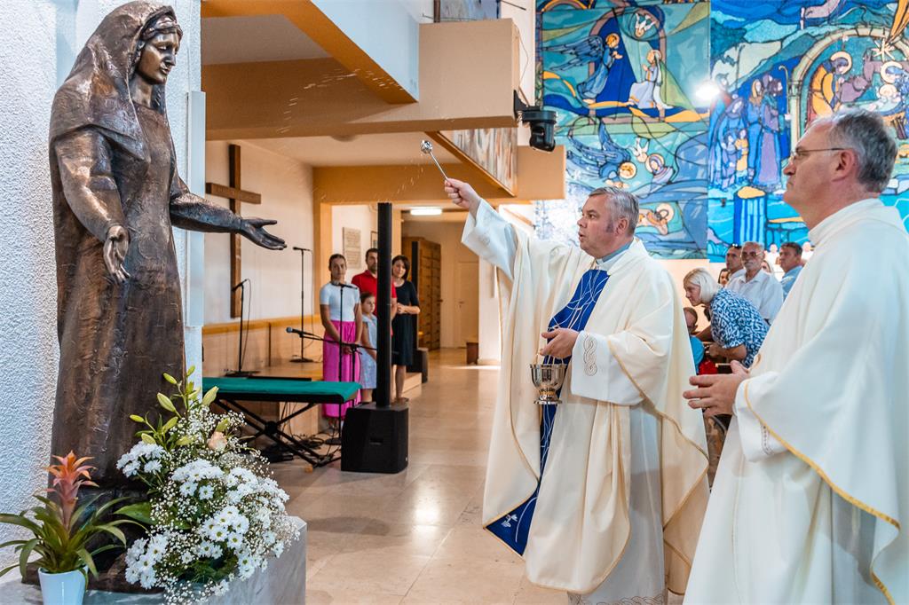 Nakon uvodnih riječi i molitve preč. Vlado Mikšić, predstojnik Ureda za kulturna dobra Zagrebačke nadbiskupije, blagoslovio je kipove, vitraj i vjernike.