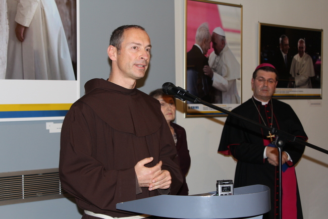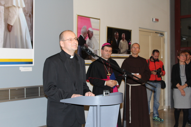 Josip Šimunović, ravnatelj Nadbiskupijskog pastoralnog instituta u svome pozdravnom govoru na samom početku svečanosti otvorenja izložbe, dar je Zagrebačke nadbiskupije i izraelskog veleposlanstva hrvatskoj javnosti koji kroz 32 fotografije donosi najznačajnije trenutke posjeta Svetog Oca Izraelu. Konstatirajući kako nitko ne može ostati ravnodušan pri susretu s likom pape Franje, prof. Šimunović je pozvao okupljene da dozvole očima i srcu da čuju govor postavljenih fotografija.