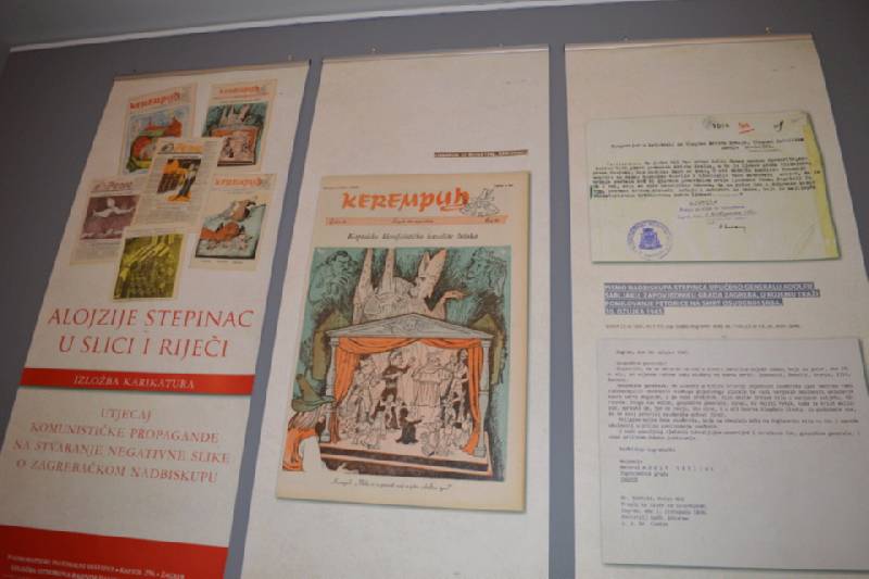 Naočigled karikature na neprimjeren način prikazuju nadbiskupa Alojzija Stepinca kao suradnika ustaškog režima i neprijatelja odnosno kočničara razvoja novog društvenog poretka. Karikatura je bila usmjerena prema oblikovanju javnog mnijenja čije je obrazovanje, odnosno stupanj pismenosti iziskivao da slikovni dio karikature nadopuni njezin tekstualni dio. Također, autori su željeli kao svojevrsni odgovor na karikaturalni dio izložbenog postava predstaviti 27 dokumenata opsegom od jedne, pa do desetak stranica teksta, čija je temeljna nakana pobijanje negativnog efekta koje postižu karikature. Bitno je osobito napomenuti kako se radi o reprodukcijama i prijepisima izvornika nastalih djelovanjem zagrebačkog nadbiskupa Alojzija Stepinca u ratnim okolnostima (14. svibnja 1941. do 14. travnja 1945.). Izložbeni postav, osim dokumenata nastalih djelovanjem nadbiskupa (zapisi, propovijedi protiv rasne politike, intervencije kod vlasti NDH, prosvjedi upućeni Poglavniku i pojedinim ministrima), sadrži i prijepise dokumenata u kojima postoje svjedočanstva drugih osoba o djelovanju nadbiskupa Stepinca u korist Srba, kao i prijepise dokumenata zahvale za nadbiskupove intervencije u korist Srba. (IKA)