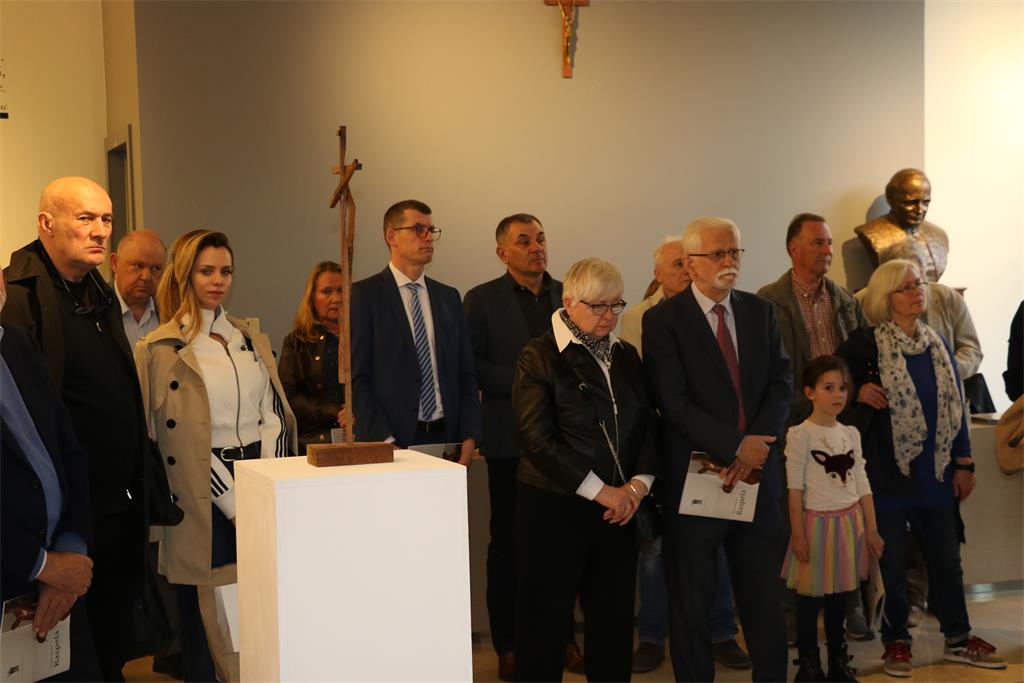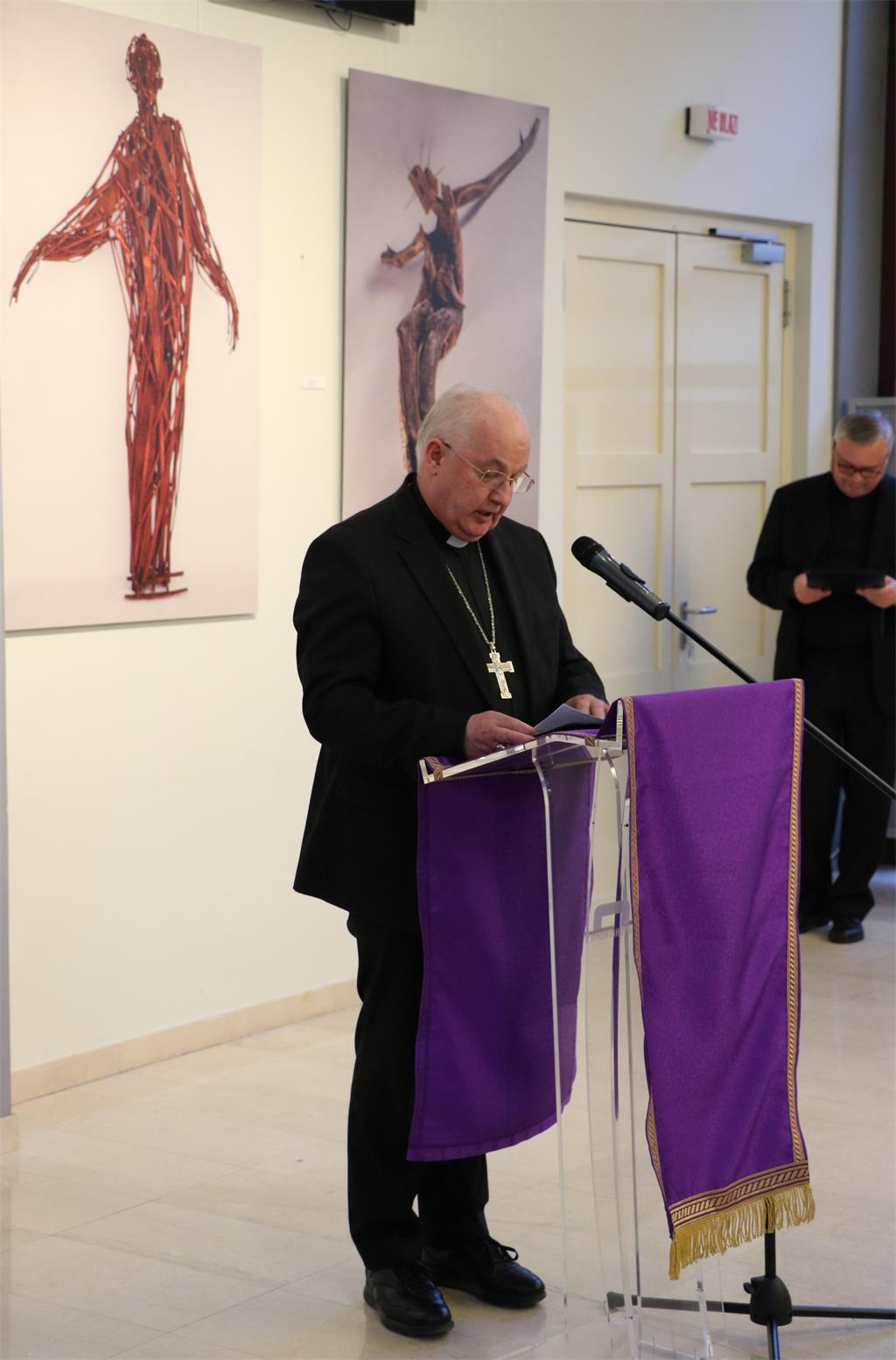 Izložbu je otvorio mons. Vlado Razum, pomoćni biskup zagrebački, koji je u svom obraćanju teološki progovorio o raspelima akademika Hrastea i o potrebi njegovanja sakralne umjetnosti.