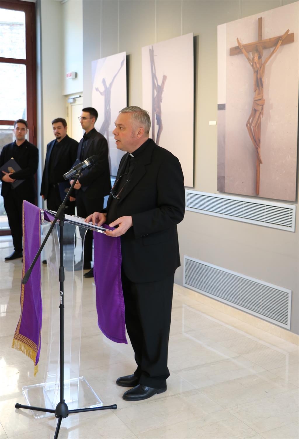 Prije zagrebačkog potresa i prije Covida, Ured za kulturna dobra nerijetko je organizirao razne izložbe sakralnog karaktera pa se tako obnavlja već započeta praksa, podsjetio je vlč. Mikšić. Ovom izložbom želi se intenzivnije povezati Hrvatsku akademiju znanosti i umjetnosti i svijet umjetnika sa Zagrebačkom nadbiskupijom. Svoju uvodnu riječ završio je pjesmom Josipa Pupačića "Moj križ svejedno gori".