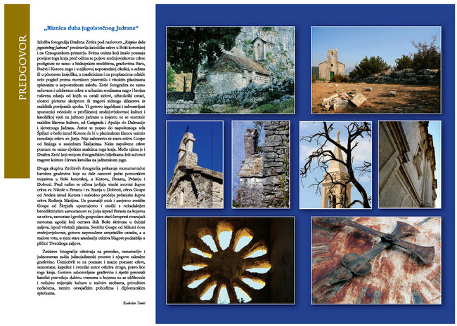 Kroz izložbu o katoličkim crkvama Kotorske biskupije i Barske nadbiskupije, posjetitelji će se moći upoznati s radom fotografa Dražena Zetića koji objektivom i okom zaljubljenika u Boku kotorsku vizualno bilježi fragmente bogate povijesti, kulturne i prirodne baštine jugoistočnog prostora Jadranskog mora na kojem stoljećima žive bokeljski Hrvati koji su danas hrvatska nacionalna manjina u Crnoj Gori.