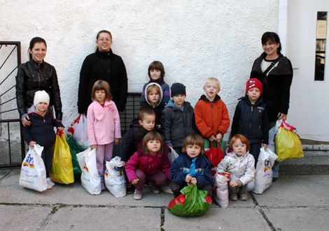 Vesela skupina darovatelja došetala je 14. listopada iz vrtića u Modruškoj 19 do Caritasovog područnog ureda u Selskoj cesti 165. Antonio, Katja, Laura, Ema, Lara, Sofia, Petar, Roko, Bartol, Bruno i Jaša došli su u pratnji svojih teta - Jelene, Monike i Martine - iz privatnog dječjeg vrtića »Pikulica« noseći u vrećicama lijepu, čistu i uščuvanu dječju odjeću ali i druge korisne potrepštine.
