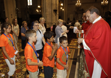 Prije susreta s biskupom Gorskim, sudionici Romske odgojne zajednice sudjelovali su na misnome slavlju u zagrebačkoj prvostolnici koju je predvodio mons. Mijo Gabrić, prebendar Zbora prebendara Prvostolne crkve zagrebačke, u koncelebraciji s vlč. Mostečakom.