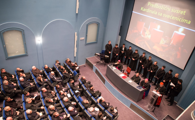 Molitvom Srednjeg časa započeo je u ponedjeljak 11. prosinca 2017. godine u dvorani Vijenac Nadbiskupijskog pastoralnog instituta predbožićni susret zagrebačkog nadbiskupa kardinala Josipa Bozanića sa svećenicima koji djeluju na području Zagrebačke nadbiskupije.