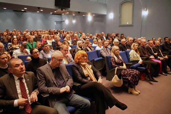 Pozdravne riječi uputili su doc. dr. sc. Iva Ivanković, državna tajnica i izaslanica Ministarstva znanosti i obrazovanja; izaslanik gradonačelnika gosp. Luka Juroš, pročelnik Gradskog ureda za obrazovanje, sport i mlade; i dr. sc. Gordana Barudžija, viša savjetnica za vjeronauk Odjela za predškolski odgoj i osnovno školstvo pri Agenciji za odgoj i obrazovanje.