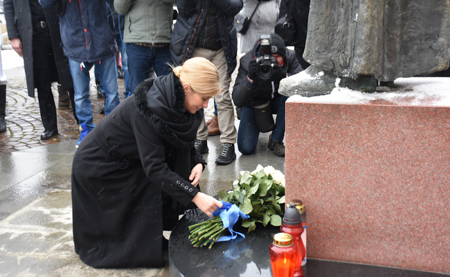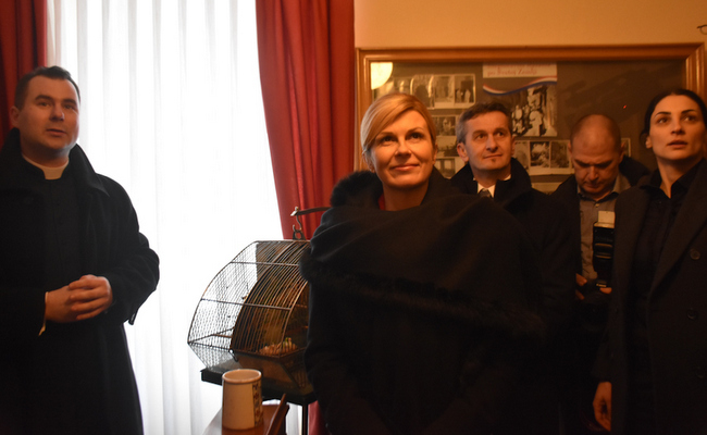 Tom prilikom predsjednica je ispred spomenika blaženom kardinalu Alojziju Stepincu položila cvijeće, nakon čega obišla crkvu Presvetog Trojstva te spomen-sobu blaženog kardinala Alojzija Stepinca s čijim ju je životom detaljnije upoznao velečasni Ivan Vučak.