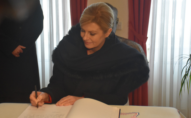- U spomen na posjet Krašiću, zavičaju blaženog kardinala Alojzija Stepinca, koji se, u vremenima bremenitim nesrećama, ratovima i nasiljem, zalagao za život i ljudsko dostojanstvo svakog djeteta i čovjeka, izražavam uvjerenje kako će njegova ljubav prema čovjeku i svjedočanstvo istine zauvijek ostati živi dio naše duhovne baštine i svjetlo našim djelima za dobro hrvatskog naroda i Domovine- upisala je predsjednica Grabar-Kitarović u knjigu dojmova, nakon obilaska spomen sobe.