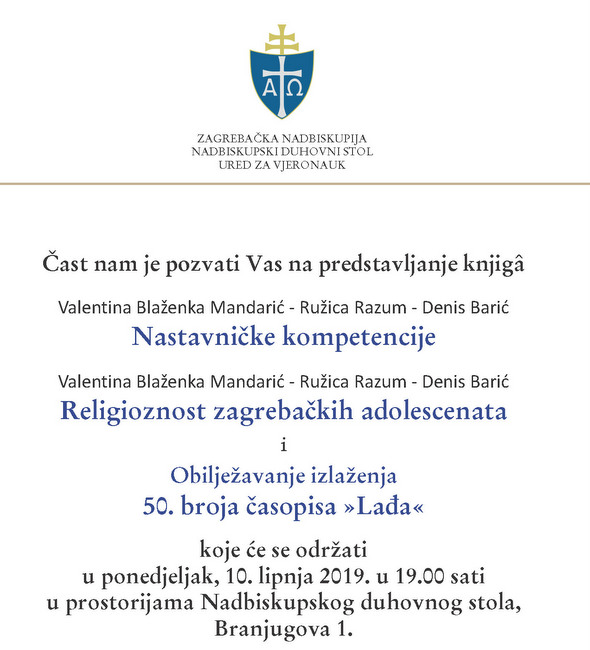 Predstavljanje knjigâ: "Nastavničke kompetencije", "Religioznost zagrebačkih adolescenata" i obilježavanje izlaženja 50. broja časopisa "Lađa"