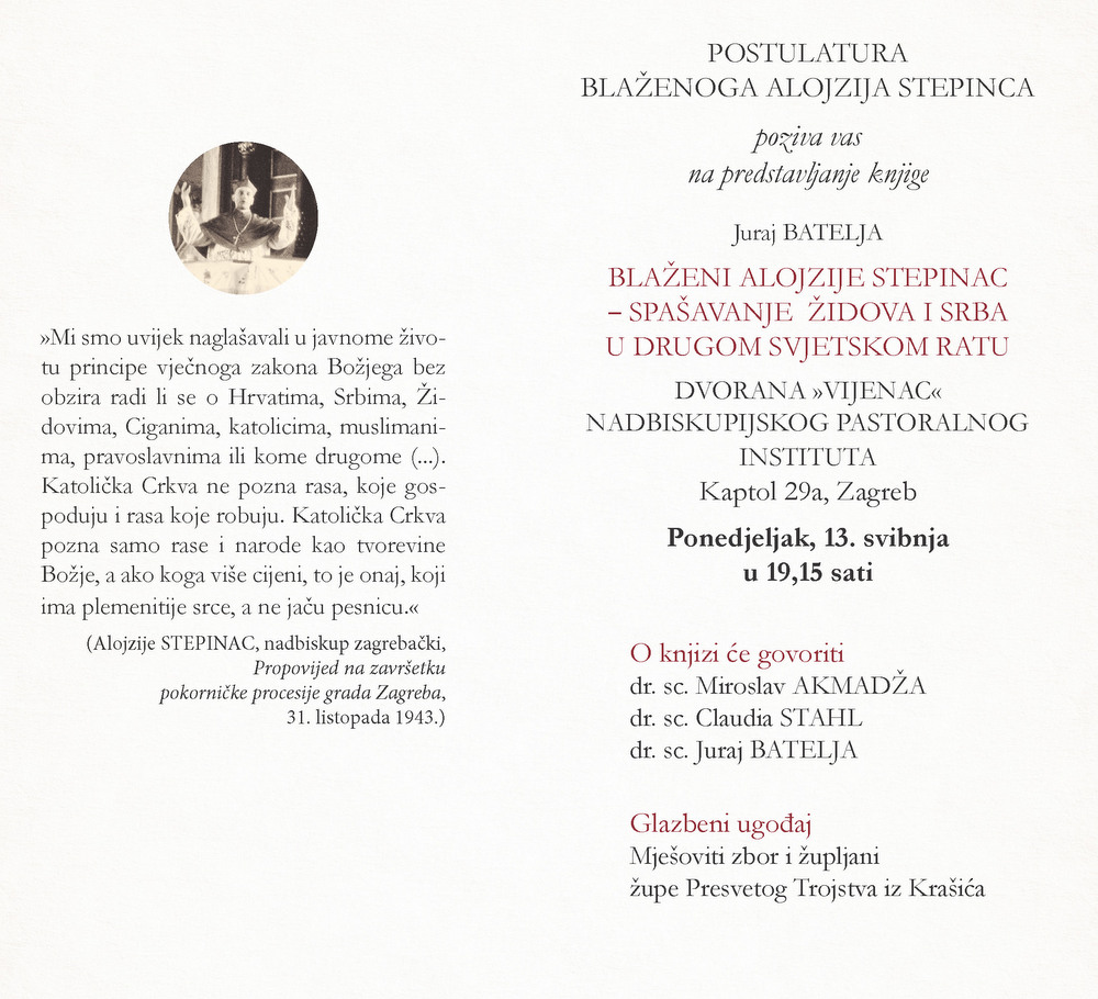 Predstavljanje knjige: "Blaženi Alojzije Stepinac - spašavanje Židova i Srba u Drugom svjetskom ratu"