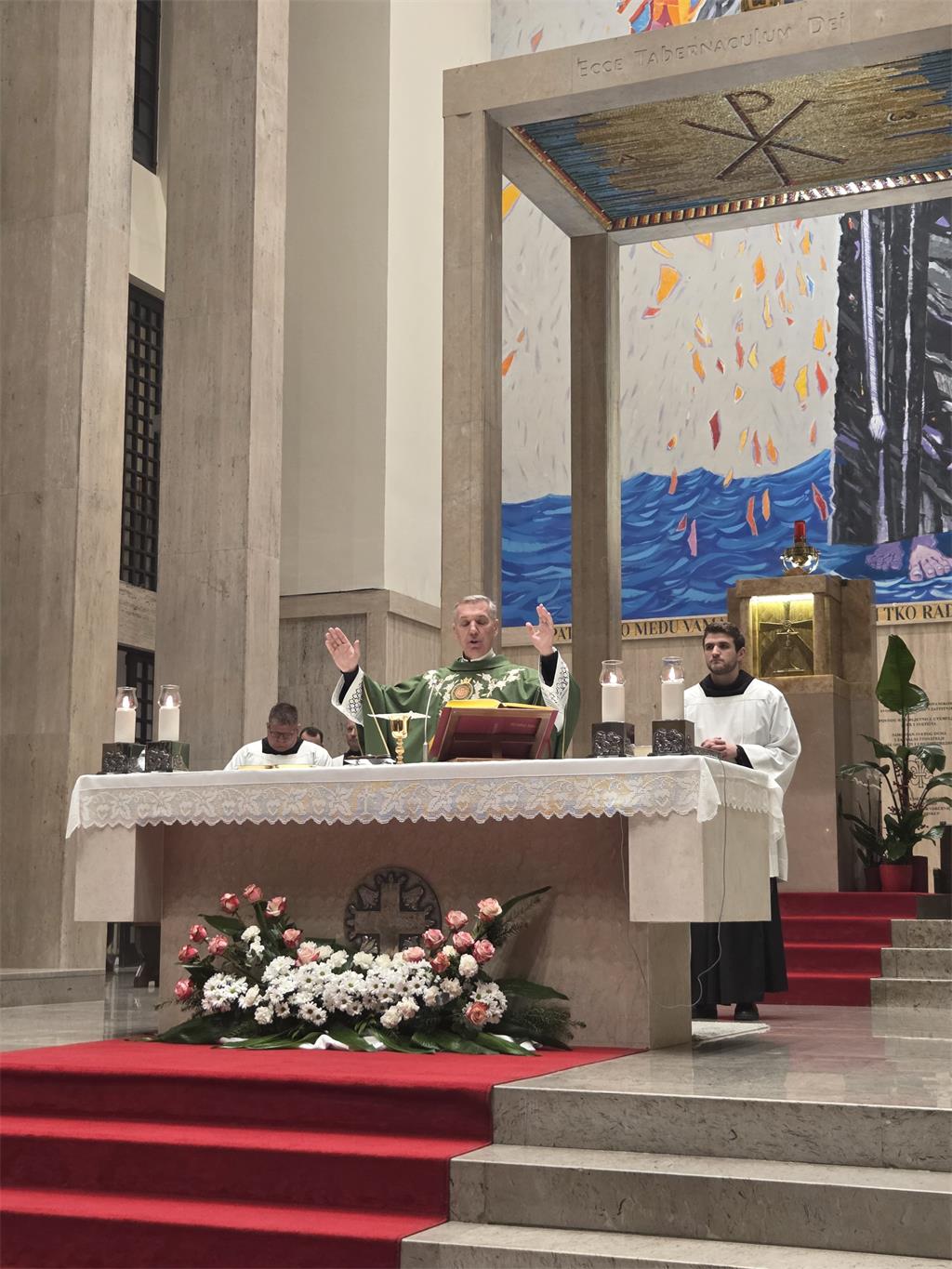Program je započeo euharistijskim slavljem koje je predvodio provincijal Hrvatske provincije sv. Jeronima franjevaca konventualaca fra Miljenko Hontić uz koncelebraciju brojnih svećenika, a liturgijsko slavlje i predstavljanje knjige glazbeno je animirao zbor Put mira i obitelj Linde.