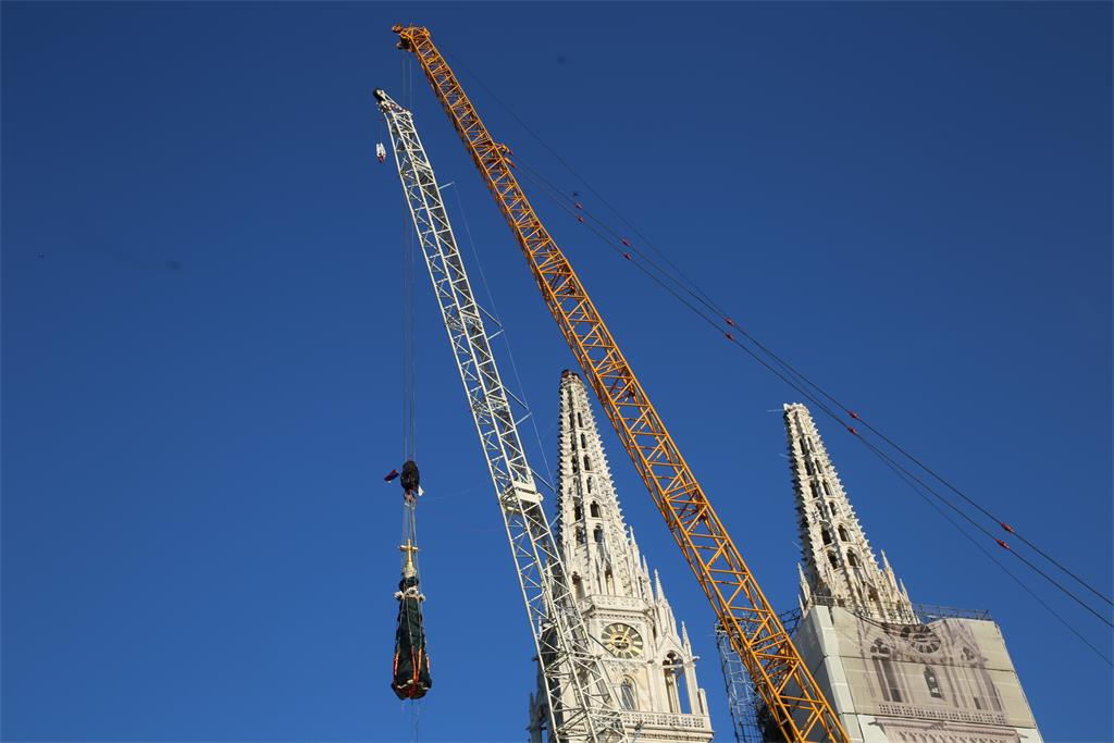 Rimossa con successo la cuspide del campanile settentrionale della Cattedrale di Zagabria