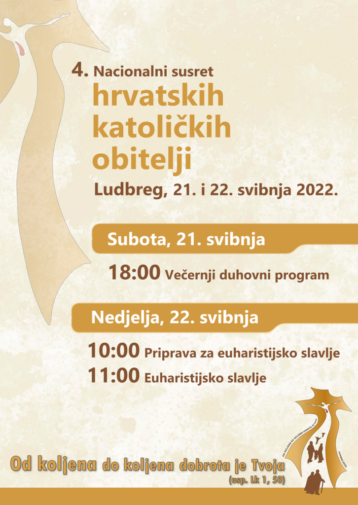 Na konferenciji za medije nakon 64. redovnog plenarnog zasjedanja Hrvatske biskupske konferencije, u četvrtak 28. travnja, varaždinski biskup Bože Radoš predstavio je geslo i logotip 4. Nacionalnog susreta hrvatskih katoličkih obitelji koji će biti održan 21. i 22. svibnja 2022. u Ludbregu.