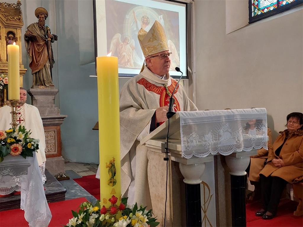 „Uskrsnuće mijenja također naše međuljudske odnose. Gledajte samo kako smo se zapetljali: počevši od obitelji, bračnih odnosa, obiteljskih odnosa, nepovjerenja koje je izraslo, susjedskih svađa, ogromnog nepovjerenja u našu Domovinu, u naše ljude koji su tu, teškoća s kojima se susrećemo, da više ne znamo kuda bi. I mnogi kažu: „Premašilo me to! Život me premašio! Ne mogu više! Moram se maknuti!“ I bježe. Neki iz braka, neki iz obitelji, neki iz Domovine, uvijek nadajući se da će riješiti svoj problem“, podsjetio je biskup i dodao: „Ali, braćo i sestre, mi sebe svugdje nosimo. Ne ide tamo drugdje neki drugi čovjek. Onaj isti čovjek, muškarac i žena, odlaze. Promjena se događa ne negdje drugdje. Gdje je Isus uskrsnuo? U svojem grobu! Tamo gdje je kamen bio navaljen! Tu je ustao na novi život. Ne negdje drugdje! A to nam, braćo i sestre, govori da se i naša promjena, naše mijenjanje stvari, ne događa negdje drugdje, nego tamo gdje nam je možda najteže. Ali ne samo našom snagom, nego snagom Božjom. Zato nam Uskrs koji slavimo, daje takvu nadu u i ohrabrenje da ne sustanemo u izgradnji onog što je dobro i lijepo.“