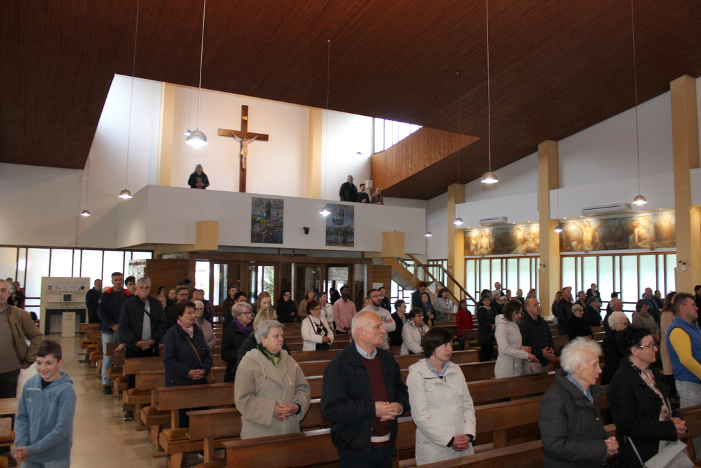 Na početku misnog slavlja pozdravljajući prisutne i predslavitelja mons. Sente rekao je kako je lijepo nakon bogatih i ispunjenih slavlja vazmenog trodnevlja i svetkovine Uskrsa ponovno sudjelovati u euharistiji koju srijedom redovito ispunjaju Josipovi hodočasnici. Među njima su bili i bračni par iz Frankfurta koji su iskoristili svoj boravak u Domovini da bi srijedom bili na misnom slavlju u Josipovom svetištu u Karlovcu.