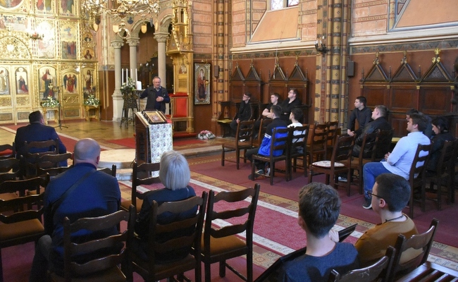 Dolaskom u Križevce dočekao ih je katedralni župnik križevački o. Mihajlo Simunović koji im je ukratko predstavio povijest obnovljene grkokatoličke katedrale Presvete Trojice, a potom je križevački vladika mons. Milan Stipić okupljenim sjemeništarcima ukratko predstavio grkokatoličku liturgiju i njenu baštinu koja je uistinu velika dragocjenost cijele Crkve. Također, objasnio im je glavna obilježja istočnog obreda i razlike između istočnog i zapadnog obreda. Sjemeništarci su posebno bili oduševljeni prekrasnim ikonostasom, zidnim oslicima i svetištem.