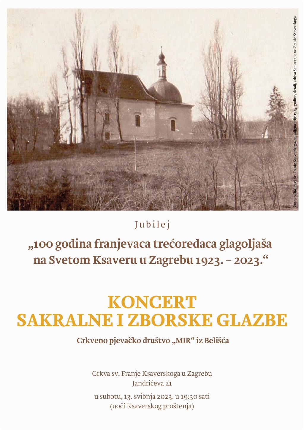 Koncert se održava uoči tradicionalnog „Ksaverskog proštenja“ i prigodom jubileja „100 godina franjevaca trećoredaca glagoljaša na Svetom Ksaveru u Zagrebu“.