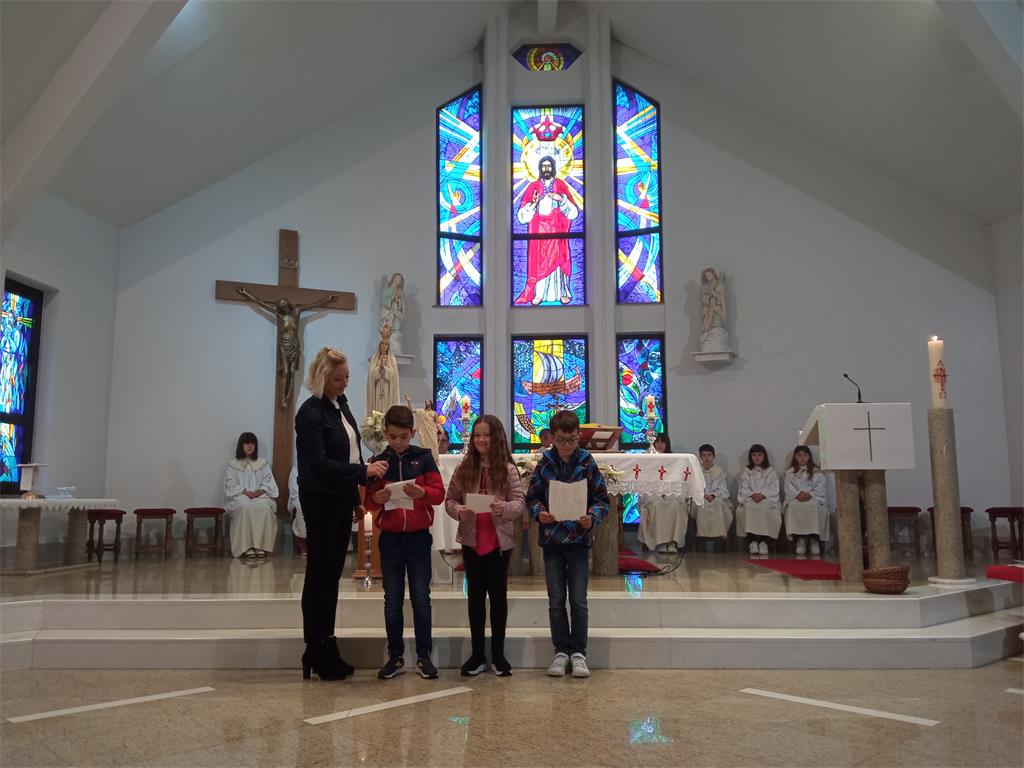 Upravitelj župe vlč. Ante Bojanić u prigodnoj je propovijedi objasnio kako prepoznati Duha Svetoga u svom životu i što činiti kako bi ga drugi mogli prepoznati u nama. Na kraju propovijedi vlč. Bojanić pitao je djecu kako tj. na koji način vole svoje majke. Djeca su uglas odgovarala: tako što ih slušamo, pomažemo im, razveselimo ih kada su tužne… U molitvi vjernika djeca su molila za svoje majke, a iznenađenje u ime sve djece pripremilo je troje ovogodišnjih prvopričesnika koji su pročitali sastavak o svojim majkama. Na kraju svete mise svako je dijete uzelo prigodan poklončić za svoju majku – magnetić s poticajnom rečenicom za majke. Proslava Majčinog dana i misno slavlje zaključeni su pjesmom „Evo nas pred tobom, Marijo“, za našu najveću, nebesku Majku.