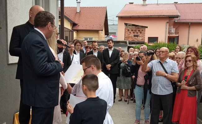 Slavlje je započelo u dvorištu mladomisnikove kuće gdje su mu roditelji Željko i Zora udijelili roditeljski blagoslov prije kojeg mu je majka uputila riječi poticaja i ohrabrenja.