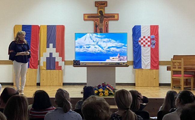 Nakon mise gospođa Kirchmayer Bilić održala je predavanje-prezentaciju „Prva kršćanska država – Armenija“ u župnoj dvorani. Brojnim okupljenim župljanima približila je drevnu povijest armenskog naroda smještenog uz planinski masiv Ararat, na kojemu se, nakon potopa, zaustavila Noina arka gdje je ponovo počela povijest čovječanstva i nastajanje novih naroda. Armenci svoju domovinu nazivaju Hajastan, prema Noinom prapraunuku Haiku. Bogata armenska povijest je u Hrvatskoj i Europi gotovo nepoznata. Obilježena je neprekidnim napadima i osvajanjima velikih osvajača, koji su ratovali preko nekada velikoga teritorija Armenije, gdje se spajaju istok i zapad. Mučeništvo, patnja i stradanje konstanta su armenske povijesti, a genocid nad armenskim narodom iz 1915., kada je pobijeno više od milijun i 500 tisuća Armenaca, ostao je nepoznat velikom dijelu čovječanstva.