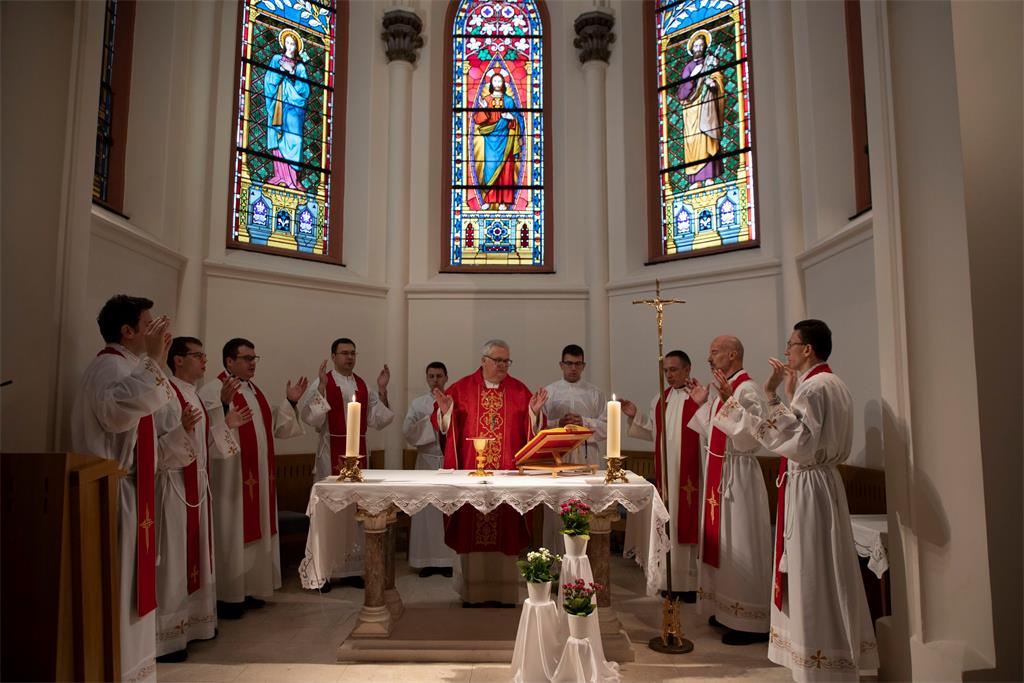 Na početku euharistijskog slavlja rektor Bogoslovije preč. Željko Faltak pozdravio je biskupa Štumpfa te mu tom prigodom čestitao rođendan. Uvodeći u euharistijsko slavlje biskup se prisjetio svog đakonskog ređenja koje je bilo na današnji dan prije 33 godine i izrazio zahvalnost Bogu na tom milosnom daru.