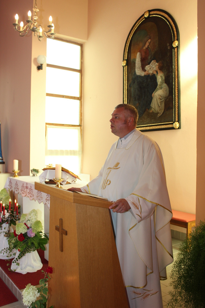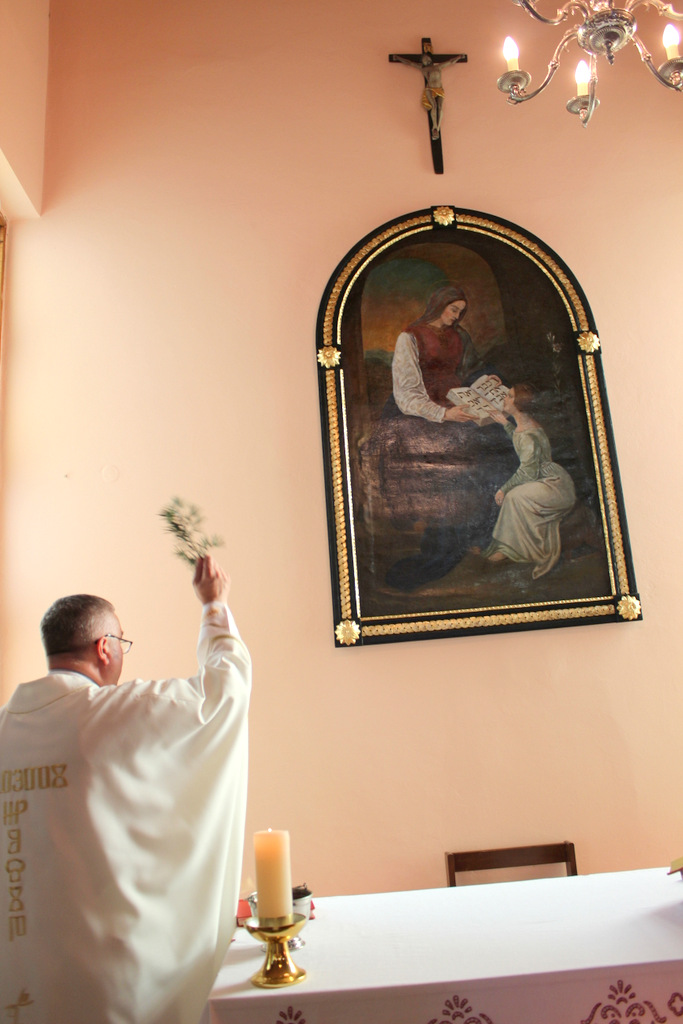 U prigodnoj homiliji vlč. Mikšić kazao kako je slike svetaca imaju određenu poruku. "Mi smo kao ljudi osobe koje gledamo i svijet doživljavamo preko svojih osjetila. Gledajući sliku, ne gledamo samo ono što je izvana već i unutarnju, duhovnu poruku. Kada gledamo ovu obnovljenu sliku na našem oltaru i da ne znamo što ona točno prikazuje, mogli bismo primijetiti dvije žene, način odijevanja tih dviju žena, položaj tijela i aktivnost u kojoj su prikazane. Zasigurno tim detaljima umjetnik šalje određenu poruku. No, ova slika ne pokazuje samo dvije žene, njihove izraze lica i ruku, nego nas potiče da se zagledamo u osobe koje prikazani likovi označavaju. Svetu Anu i presvetu Bogorodicu. Možemo kazati da nas svaka sveta slika kroz svece upućuje prema dobrome Bogu. Zato je u Katoličkoj Crkvi uvijek bio naglasak na duhovne likove koji nam šalju određenu poruku, a ne čašćenje samih slika ili kipova. Diveći se herojskom životu određenog sveca zahvaljujemo dobrome i svemogućemu Bogu koji se upravo proslavio u tom svecu. Stoga nas svaki svetac na svoj način vodi do Boga što je konačni cilj svakog štovanja svetih ljudi", kazao je vlč. Mikšić.