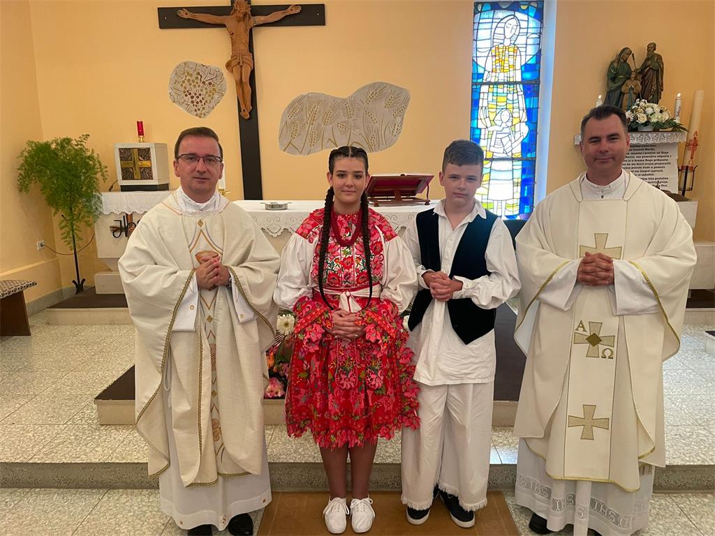 Sakrament potvrde primilo je dvoje krizmanika koji su za tu prigodu bili obučeni u hrvatske narodne nošnje.