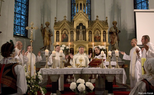 Misno slavlje predslavio je vlč. Siniša Hegedušić, župnik Župe sv. Martina pod Okićem, a koncelebrirali su svećenici Samoborsko-okićkog dekanata: preč. Ivica Cik, dekan i župnik Župe sv. Anastazije; vlč. Marko Nimac, župni vikar Župe sv. Anastazije; fra Željko Janjić, gvardijan samoborskog franjevačkog samostana; vlč. Ante Bojanić, upravitelj Župe Krista Kralja u Domaslovcu; vlč. Josip Čulig, upravitelj Župe sv. Ivana Krstitelja u Lugu Samoborskom te vlč. Josip Šimunović, dekan Katoličkog bogoslovnog fakulteta u Zagrebu. Misu je pjesmom animirao samoborski župni zbor.