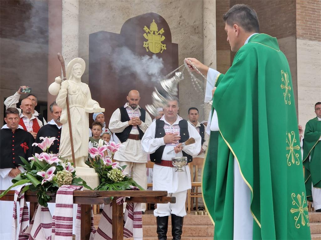 Svetu misu u crkvi bl. Alojzija Stepinca predslavio je preč. Domagoj Matošević, rektor Svetišta, uz koncelebraciju vlč. Josipa Čuliga, upravitelja župa sv. Ivana Krstitelja u Lugu Samoborskom i Duha Svetoga u Noršić Selu. Članovi Bratovštine sv. Jakova i udruge Ekosspiritus iz Samobora obukli su svoja svečana bratovštinska odjela i narodne nošnje samoborskih župa te su na oltar prinijeli kameni kip sv. Jakova apostola, rad gospodina Slavka Bunića iz Ivanca. Kip će biti izložen u prostoru budućeg gostinjca, hodočasničkog prenoćišta. Kip je na kraju mise blagoslovio preč. Matošević te istaknuo da će kip biti trajno izložen na čašćenje brojnim hodočasnicima pješacima koji će u Svetištu naći prenoćiste i odmorište za tijelo nakon napornih hodočašća.