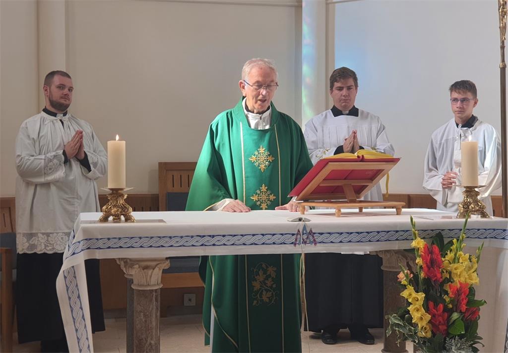 Po dolasku u Bogosloviju pozdravio ih je odgojitelj vlč. Josip Đurin, nakon čega je zajednica slavila svetu misu u bogoslovnoj kapeli Presvetog Srca Isusova koju je predvodio preč. Toljanić i održao prigodnu homiliju. Naglasio je kako se zajednica sada nalazi u srcu bogoslovne zajednice u kapeli Srca Isusova, gdje se događa najvažniji dio formacije, a to je odnos sa Gospodinom Isusom bez kojega nema svećenika. Rekao je kako bez molive nema svećenika, kako osobne tako i one koja dolazi od vjernoga naroda koji moli za svoje svećenike.