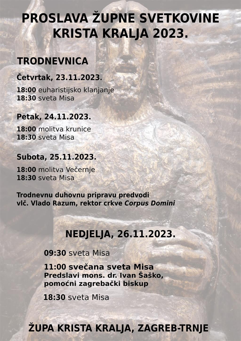 Drugi dan trodnevnice uoči proslave župne svetkovine Krista Kralja u zagrebačkoj župi Trnje
