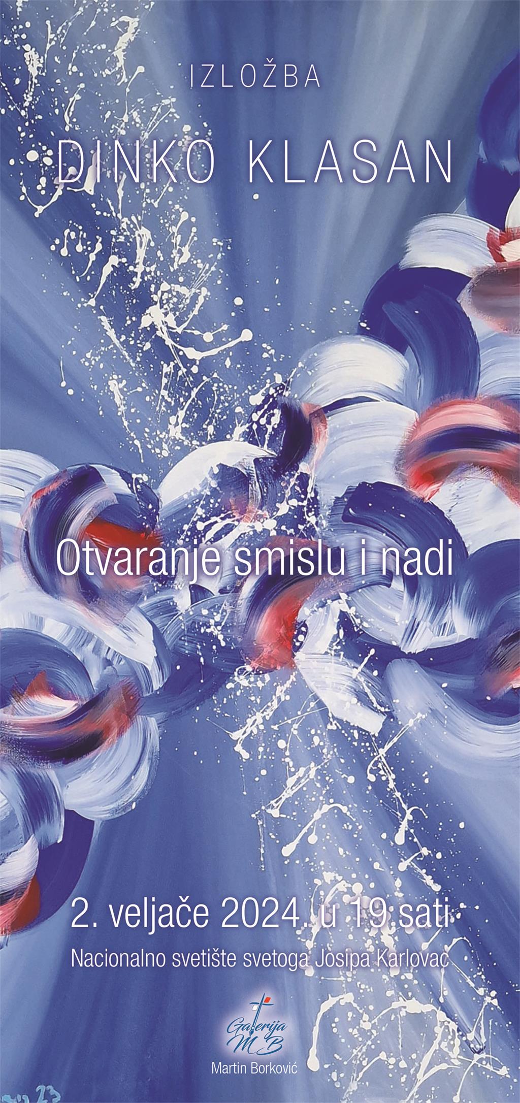 Galerija „Martin Borković” Nacionalnog svetišta svetoga Josipa u Karlovcu poziva na otvorenje izložbe: "Otvaranje smislu i nadi" Dinka Klasana, poduzetnika i umjetnika iz Bjelovara i Malinske, 2. veljače 2024. u 19 sati u Galeriji „Martin Borković” Nacionalnog svetišta svetoga Josipa u Karlovcu
