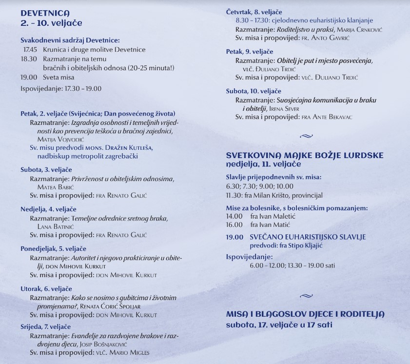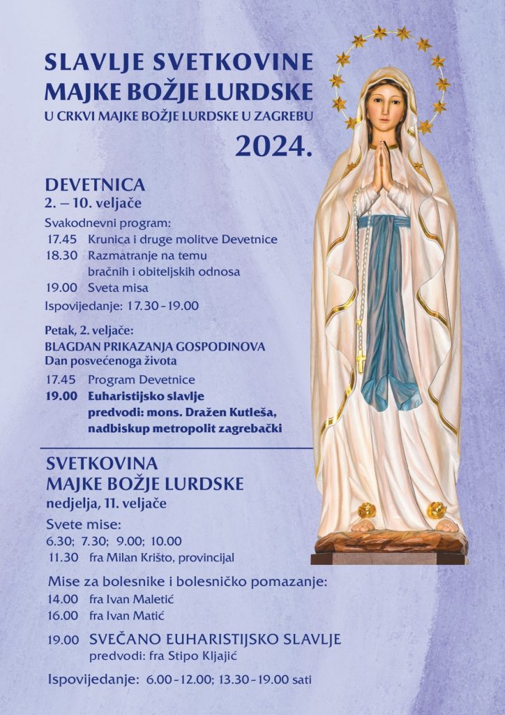Središnje misno slavlje u 19 sati na svetkovinu Blažene Djevice Marije Lurdske u nedjelju, 11. veljače 2024. predvodit će u crkvi Majke Božje Lurdske u Zagrebu fra Stipo Kljajić.