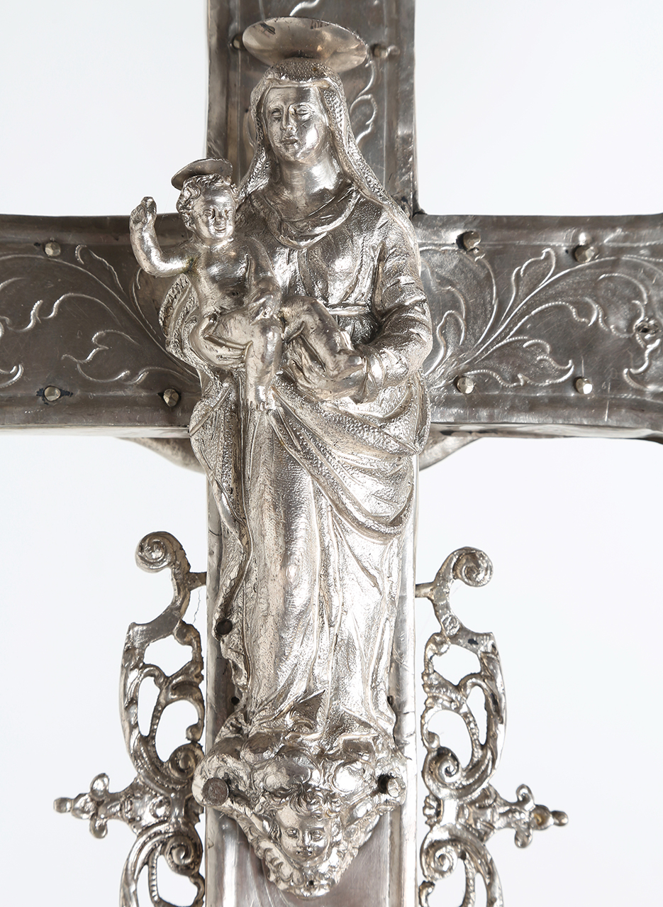 Čašćenje Blažene Djevice Marije duboko je ukorijenjeno u katoličkoj tradiciji, jer je ona neraskidivo povezana s Kristovim djelom spasenja. Drugi vatikanski sabor posebno naglašava Marijino posredništvo i ulogu u vjerničkom životu, ističući kako svako čašćenje Marije u konačnici vodi njezinu Sinu. Dvostruka ikonografija procesijskog raspela upravo to odražava - ne može se razumjeti Krist bez Marije, niti Mariju bez Krista. Oni su povezani u misteriju otkupljenja.