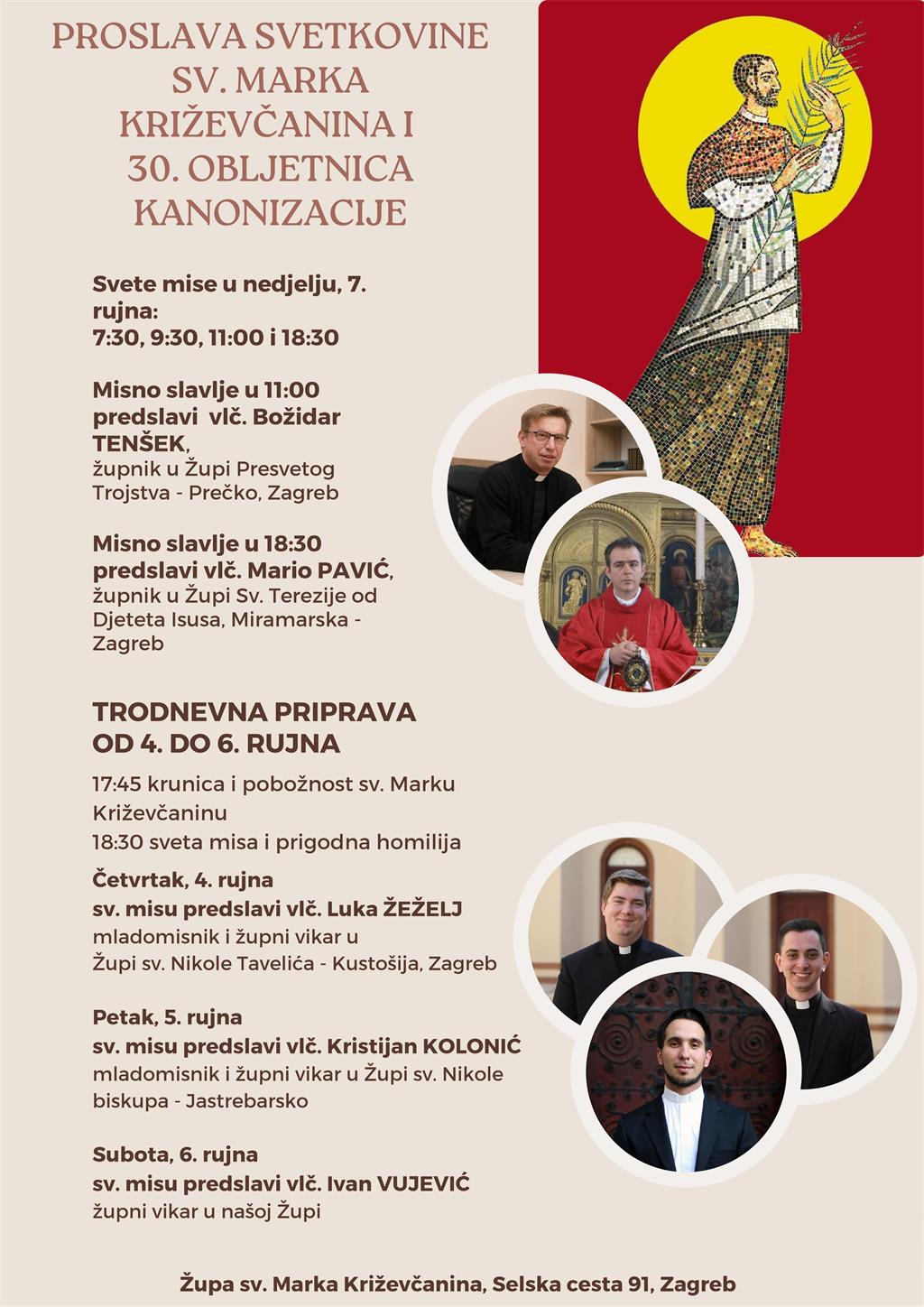 U nedjelju, 7. rujna Župa sv. Marka Križevčanina proslavit će titular župe te 30. obljetnicu kanonizacije svog župnog zaštitnika.