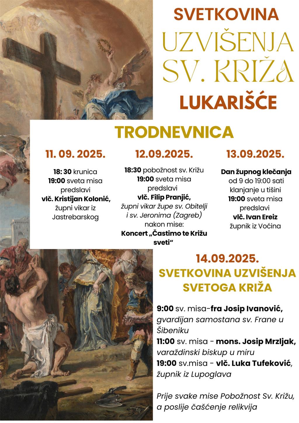 Raspored misnih slavlja u trodnevici i na samu svetkovinu Uzvišenja Svetoga Križa možete vidjeti na plakatu.