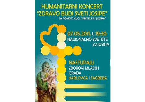 Koncert „Zdravo budi sveti Josipe“ održati će se u subotu, 7. svibnja 2011. godine, u pastoralnom centru Nacionalnog svetišta sv. Josipa s početkom u 19.30 sati. Nastupiti će zborovi mladih iz Karlovca i Zagreba, a organizira ga „Zajednica mladih Agape“.