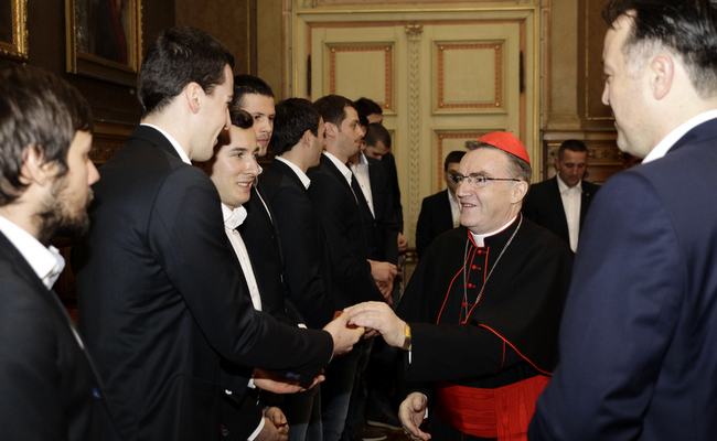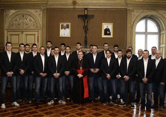His Eminence Josip Cardinal Bozanić, Archbishop of Zagreb, met Croatia national handball team led by the head coach Slavko Goluža. The meeting took place on Monday, January 12 in bishop's palace in Zagreb.