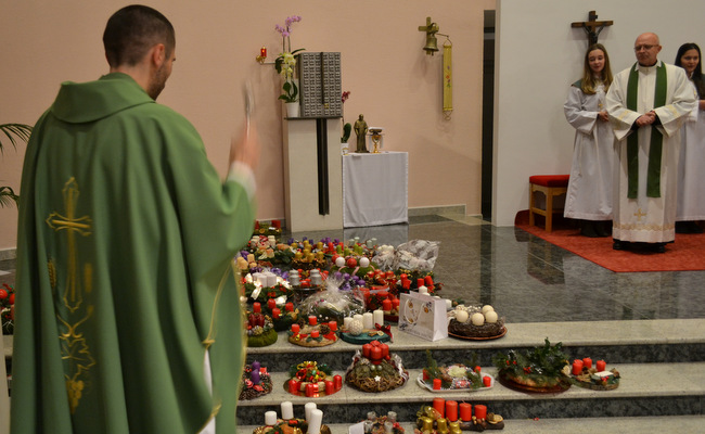 Prva dva dana, nakon svete mise, ostali smo u klanjanju pred Presvetim dok je trećega dana o. Dražen Marija blagoslovio adventske vjenčiće koje su vjernici donijeli sa sobom na svetu misu.
