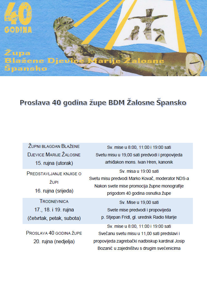 Proslava 40 godina Župe BDM Žalosne, Špansko