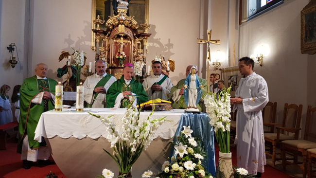Misno slavlje je predvodio mons. Valentin Pozaić, pomoćni biskup zagrebački u miru uz koncelebraciju župnika vlč. Marijana Culjaka, domaćeg sina svećenika vlč. Blaža Bartola i dvojicu đakona, Ratka Podvorca trajnog đakona i Alena Vrbeka, nedavno zaređenog đakona koji se priprema za svećeništvo, iz susjedne župe Sveti Križ Začretje.