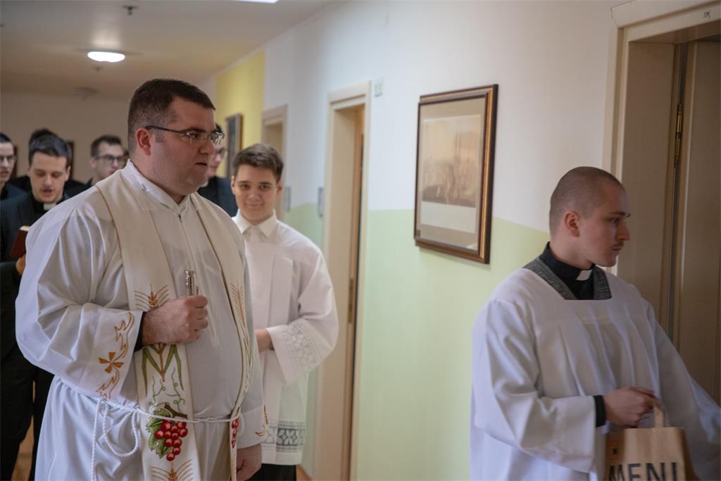 Nakon misnog slavlja uslijedila je blagoslovna molitva u kapelici Presvetog Srca Isusovog i pojedinačni blagoslov soba i zajedničkih prostorija koji je završio blagoslovom blagovaonice i zajedničkim ručkom. Na kraju ručka bogoslovima se obratio rektor Faltak koji je tom prilikom nazočnima zaželio dobrodošlicu te uz nekoliko poticajnih riječi svima čestitao i zaželio uspjeh u novoj 2022. godini.
