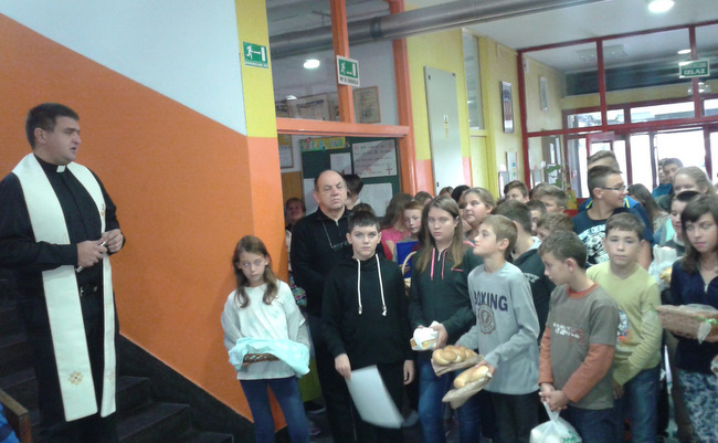 Župnik Župe Blaženog Alojzija Stepinca, Branko Risek, blagoslovio je kruh i kolače koje su učenici donijeli. Podsjetio nas je na Isusa koji je jednom prilikom s 5 kruhova čudesno nahranio 5000 muškaraca.