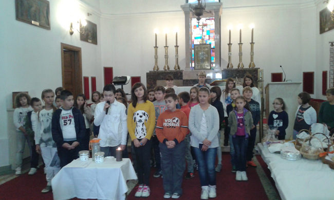Župnik Branko Risek zahvalio je učenicima na njihovim prekrasnim molitvama i pjevanju te ih, budući da tako lijepo pjevaju, pozvao u dječji zbor