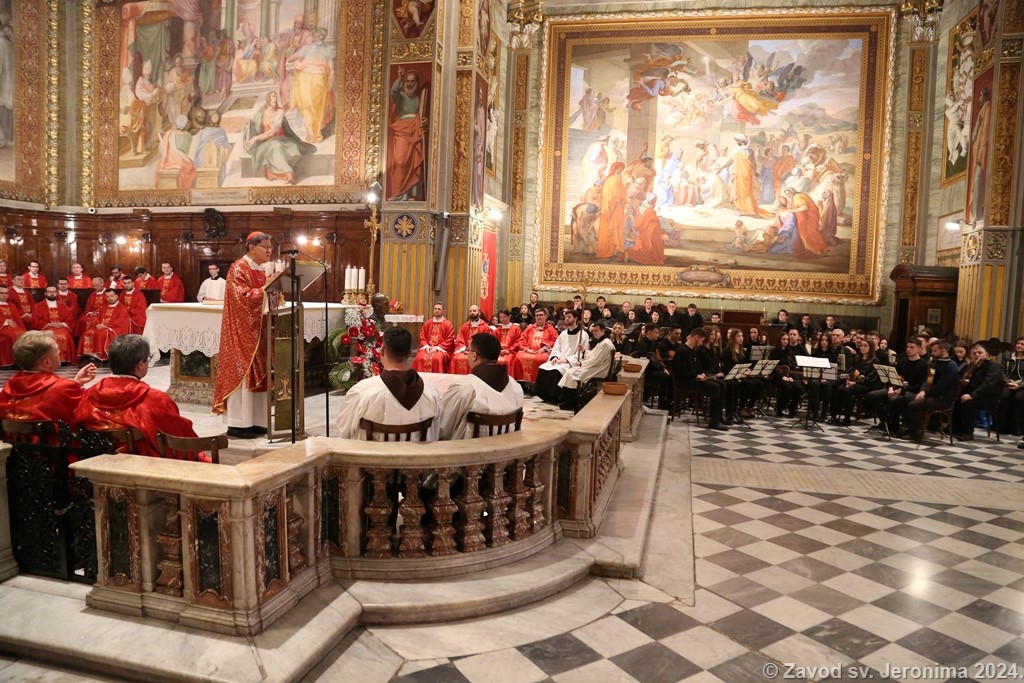 Na svečanom euharistijskom slavlju koje je predvodio kardinal Luis Antonio Gokim Tagle, pro-prefekt Dikasterija za evangelizaciju, koncelebrirali su mons. Giorgio Lingua, apostolski nuncij u Republici Hrvatskoj te mons. Petar Palić, mostarsko-duvanjski biskup. Također, koncelebriralo je i tridesetak svećenika, među kojima su, uz članove Zavoda sv. Jeronima, bili: mons. Ivan Kovač, podtajnik Dikasterija za biskupe; mons. Janusz Balchowiak, mons. Hrvoje Škrlec, mons. Jan Maria Chun Yean Choong iz Državnog Tajništva; prof. Fernando Puig, dekan Fakulteta kanonskog prava Papinskog sveučilišta Svetog Križa; prof. Krzysztof Bieliński s Alfozijanske akademije, rektori drugih rimskih crkvenih zavoda te hrvatski svećenici i redovnici koji su na studiju ili službi u Rimu.