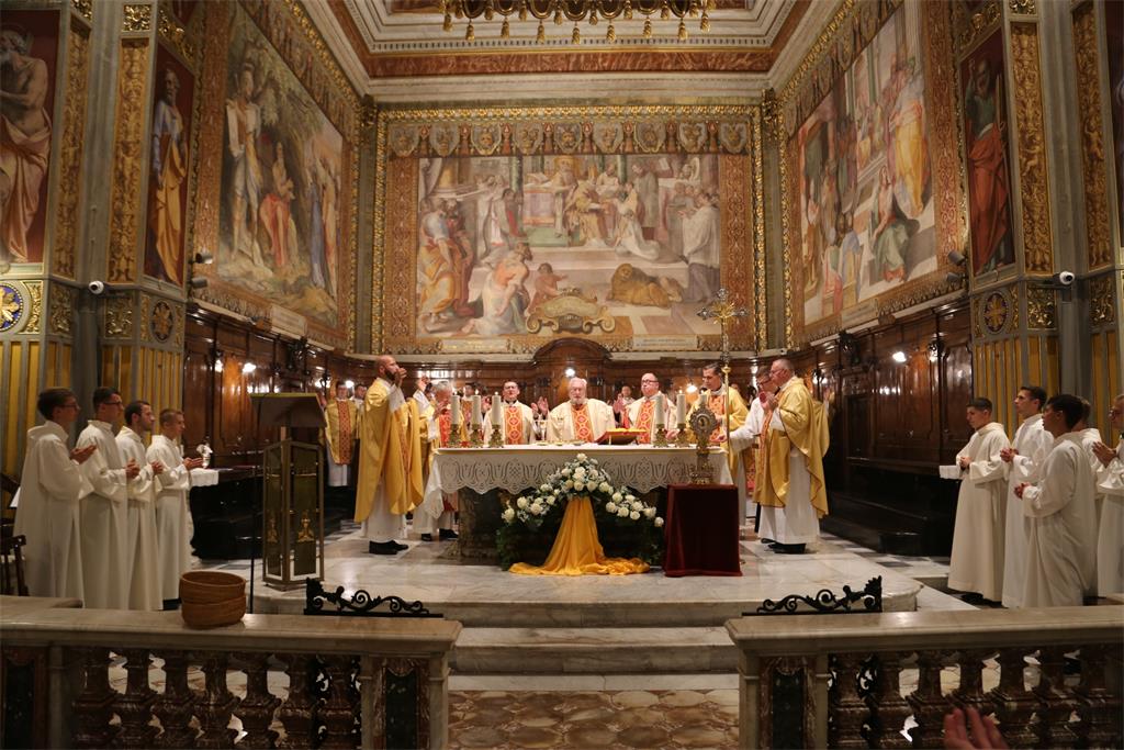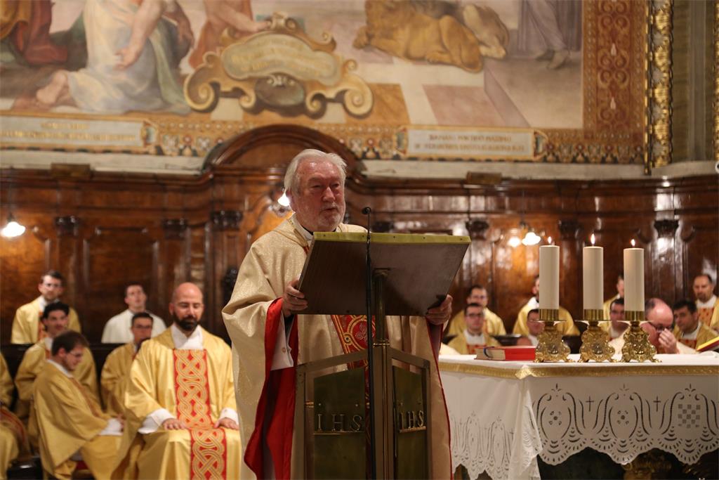 Euharistijsko slavlje na hrvatskom jeziku predvodio je p. Mihály Szentmártoni, SJ, u povodu 50. godišnjice svojega svećeničkoga ređenja. Szentmártoni je profesor emeritus Papinskog sveučilišta Gregoriana i bivši duhovnik Papinskog hrvatskog zavoda sv. Jeronima. Uz njega, koncelebrirao je rektor preč. Marko Đurin te četrdesetak hrvatskih i drugih svećenika koji su na službi ili studiju u Rimu među kojima su bili: mons. Hrvoje Škrlec i mons. Mario Popović iz Državnog Tajništva Svete Stolice, p. Željko Paša, SJ, dekan na Papinskom orijentalnom institutu, don Adam Sycz, rektor Papinskog poljskog instituta, don Pavol Zvara, rektor Papinskog slovačkog zavoda sv. Ćirila i Metoda, don Ante Dražina, iz Dikasterija za biskupe, don Marko Škraba, vicerektor Zavoda i p. Alan Modrić, duhovnik Zavoda.