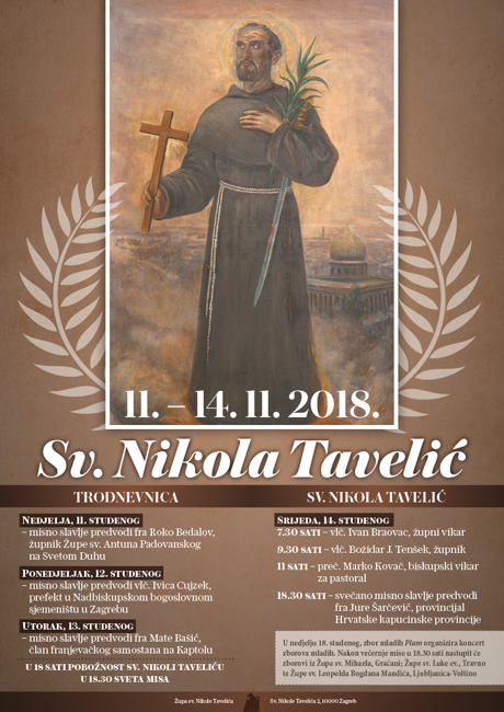 Prije svake mise tijekom trodnevnice u 18 sati održat će se pobožnost sv. Nikoli Taveliću.