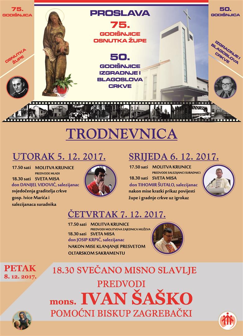 Večernju svetu misu u 18.30 sati predvodit će pomoćni biskup zagrebački mons. Ivan Šaško.
